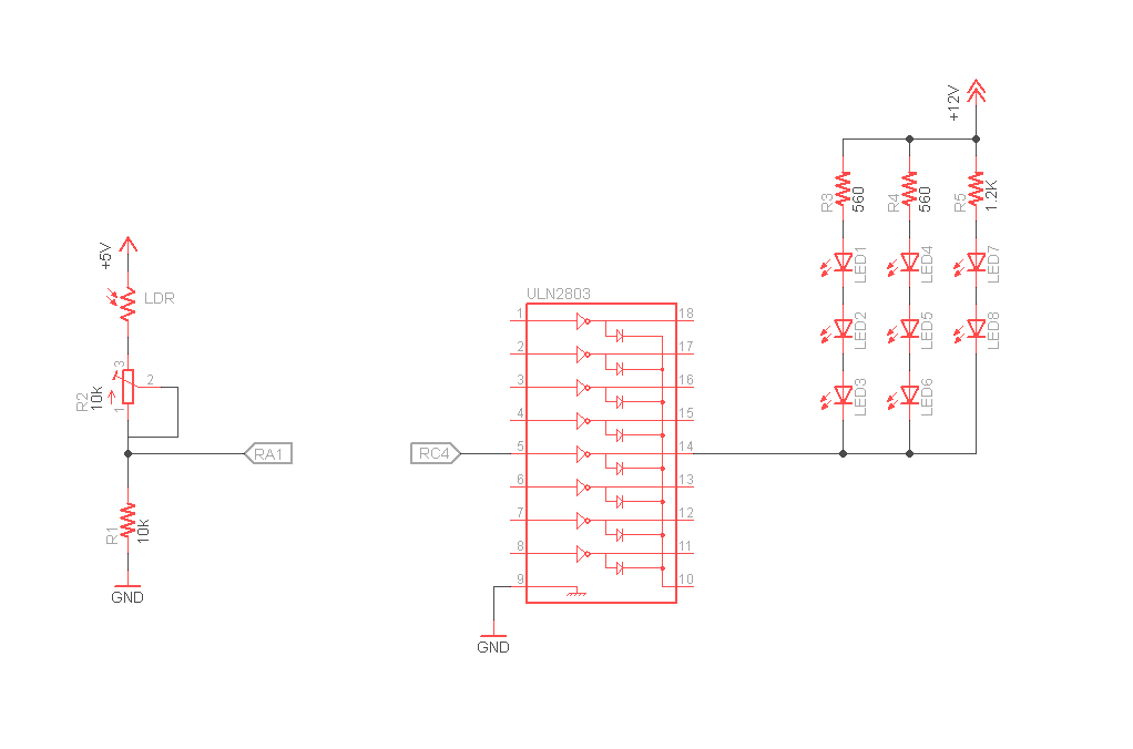 Questo valore di tensione viene elaborato dal microcontrollore, e se necessario invia un segnale all’ingresso dell’ULN2803 che pilota l’illuminazione esterna.